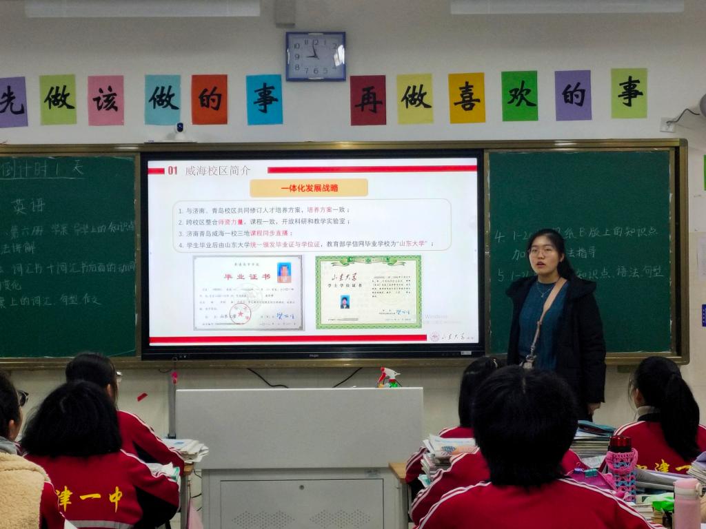 本站讯 2020年1月18日晚20:30,十大网投官网“崴路有你·圆梦山大”实践队王肖晴、杨晨两名队员于山东省德州市宁津县第一中学高三12班进行宣讲活动。高三12班班主任及全体同学参加了此次活动。