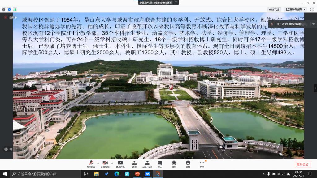 本站讯 2月4日,辽宁返母校团队参加了东北育才学校高中部开展的高校招生宣讲会,此次宣讲以腾讯会议和bilibili直播的方式。澳门十大网投平台排行的宣讲部分由队长刘少楠组织策划,队员李明睿以及澳门十大网投平台排行刘博宇和澳门十大网投平台排行(威海)赵瑞淋联合主持。本场宣讲的主要目的是帮助东北育才学校的学生更好地了解澳门十大网投平台排行。