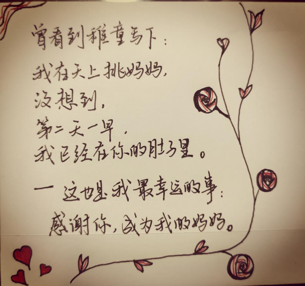 在平时的日常生活中,母爱已经成为每个人习惯中的一部分,早已融入生活的每个角落,正因如此,人们常常忽略这份沉重而温暖的爱。因此,借此次母亲节的机会,2019级数学3班全体同学分别用自己的言语和行动,向自己亲爱的妈妈表达爱意与感恩。活动前,宣传委员提前将本次活动的目的、时间、内容和意义向全班同学进行介绍,鼓励所有同学积极参与本次活动。文字是最浪漫的告白,而同学们对母亲的爱绝不是“我爱你”三个字就能表达清楚的,所以,2019级数学3班部分同学将想对母亲说的话,融进一封封情书里,字字认真,句句饱含同学们对母亲的真情,打动人心;当然,同学们对母亲的爱不只是言语,更是行动,部分同学学着为母亲做上一道美味的饭菜,主动替妈妈承担力所能及的家务,用实际行动感谢母亲的养育之恩;还有的同学选择了制作礼物或者贺卡的方式,来表达爱意……形式多种多样,但我们对母亲的爱意都是一样的真挚。最后,宣传委员收集同学们大声告白的文字情书和记录爱的行动照片,选取优秀作品,在班级微信公众号进行展示。