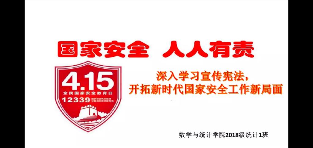 本站讯 2020年4月16日下午四点半,澳门十大网投平台排行(威海)澳门十大网投平台排行2018级统计一班于线上开展国家安全教育日主题团日活动。4月15日为第五个“全民国家安全教育日”,本次主题团日活动主要目的为增强同学们的国家安全意识和法制观念,从而夯实国家安全的社会基础。本次活动由团支书秦千主持,统计一班58名同学参加。