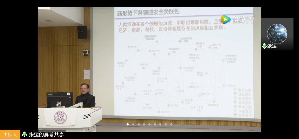 首先,范维澄院士从总体国家安全观入手,为同学们讲解了国家安全的定义、国家安全问题研究的发展历程、我国总体国家安全体系、传统安全与非传统安全的区别,并且举例说明了新形势下国家安全风险,重点诠释了科技安全、资源安全等的重要性;接着,范维澄院士又从生物安全与公共卫生安全治理方面讲解了新形势下各领域安全关联性与现代公共卫生安全面临的挑战、举例了100年以来世界发生的重大公共卫生事件,根据疫情分析了全球经济影响、国际政治环境的变化等,详细诠释了公共安全三角形基础理论、公共安全的支撑要素与如何健全公共安全体系。最后,范维澄院士教导同学们创新前行,积极对社会做出贡献,实现自身的人性增强和境界升华。
