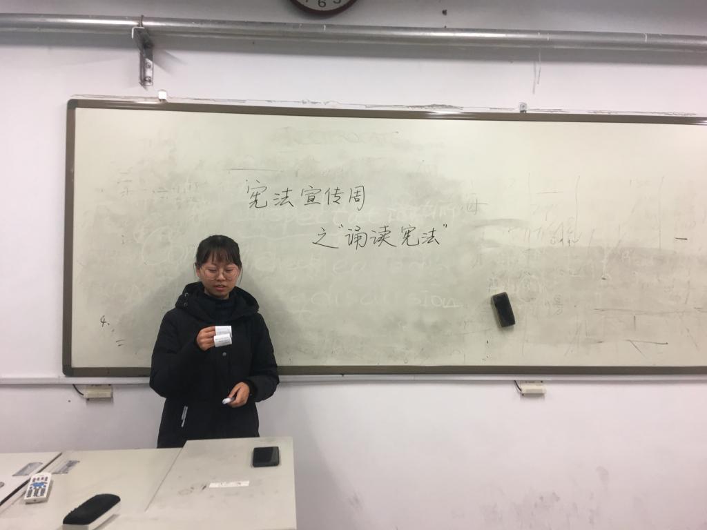 本站讯 2019年12月2日,2019级数学3班于文学楼602教室开展课前诵读宪法活动,2019级数学3班团支部全体成员参加了此次活动。