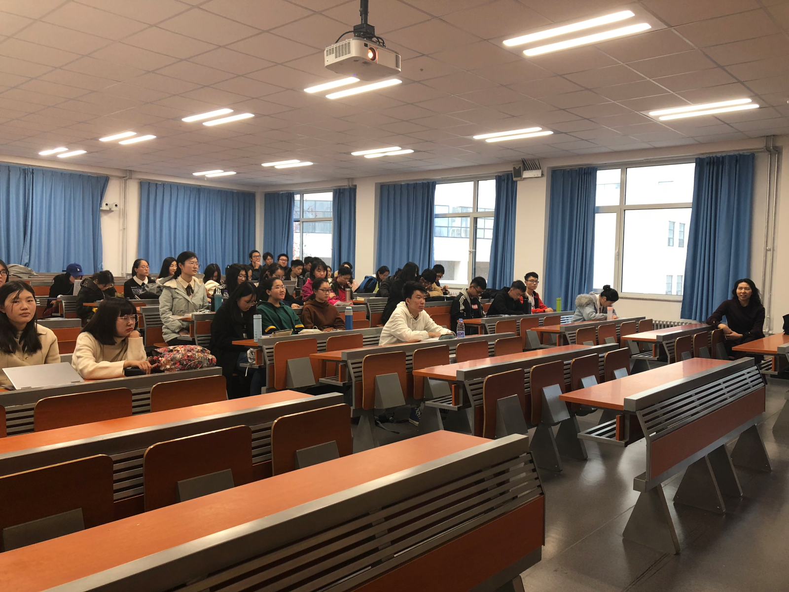 王福临首先详细介绍了本学期主题教育立项计划及本次班会的相关准备、分组情况。随后各组按照顺序依次上台进行了成果展示,同学们将前期搜集的本地区的红色经典故事结合自身学习生活实际进行了讲解和感悟交流,并着重就红色经典中体现出的优秀品质的现实意义进行了阐释。在小组展示完毕后,组织委员高君钰对各组展示成果进行了总结分析,并带领学员重温了入团誓词。最后,单丙波对本次活动进行总结,她希望全体同学能够以本次活动为契机,深入学习习近平总书记在学校思想政治理论课教师座谈会上的重要讲话精神,传承红色精神,增强政治意识,立鸿鹄志,做奋斗者,为建设中国特色社会主义事业不断努力。