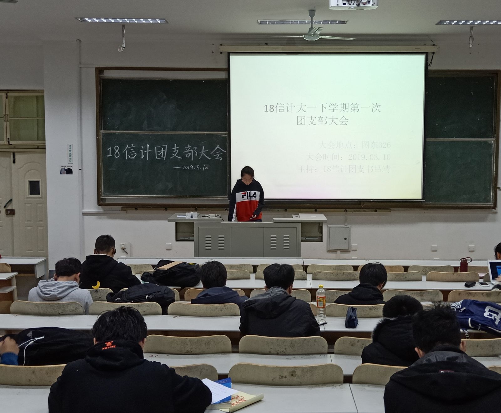 本站讯 2019年03月10日,2018级信息与计算科学团支部于图东326开展了新学期第一次团支部大会,本次会议由团支书吕婧主持,班级全体团员参加了这次会议。
