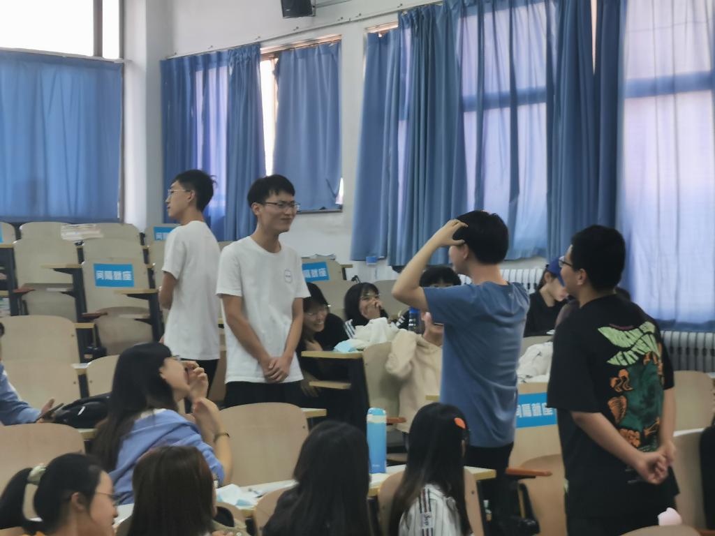 班会伊始,班长高锋请由其他学院转专业来到2019级统计学二班的新同学们进行自我介绍,让同学们相互了解,熟悉彼此。随后,班会进入游戏环节。以“国”字为主题的歌曲接龙、搭肩抓手等游戏,拉近了同学间的距离,让同学们不再拘谨。“快乐传真”中,六人一组,第一个人用肢体语言表达给定的词语,后面依次传递,让最后一位同学猜。参赛同学手忙脚乱的表演,困惑迷茫的表情令在座的同学忍俊不禁。随后又进行了“交换名字”、“就不听指挥”等游戏,让每一位同学都参与到了游戏当中。游戏环节结束后,高锋分发了他在中秋佳节之际为全体同学准备的月饼,给同学们在初秋的凉意中带来温暖。班会最后,高锋让同学们在纸条上写下自己的姓名、联系方式,通过抽签的方式确定了每个人在接下来的一周里需要守护并不能被发现的同学,可以向对方提供一声晚安,一句安慰,一顿早餐等。班会在热烈的掌声中落下了帷幕。