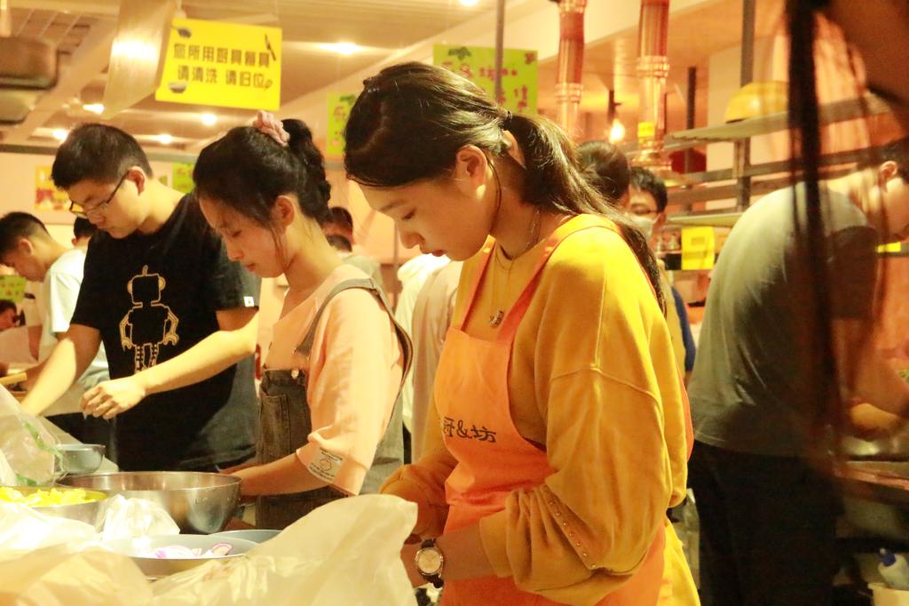 本站讯 2020年9月26日下午,澳门十大网投平台排行2019级数学与应用数学班30位同学于澳门十大网投平台排行(威海)对面通道厨坊进行第一次班级团建活动,活动以中秋节为契机,进行一场厨艺的大比拼,通过分组烹饪、互相帮助以及品尝菜肴等方式促进新同学之间的感情。此次团建活动由2019级数学与应用数学班委会全体策划,部分同学参与。