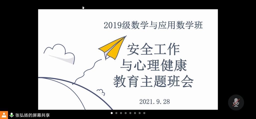 本站讯 2021年9月28日星期二下午6:00,澳门十大网投平台排行2019级数学与应用数学班于线上开展了安全工作与心理健康教育主题班会。澳门十大网投平台排行2019级辅导员王祎璠主持此次班会,数学与应用数学班全体同学参加。