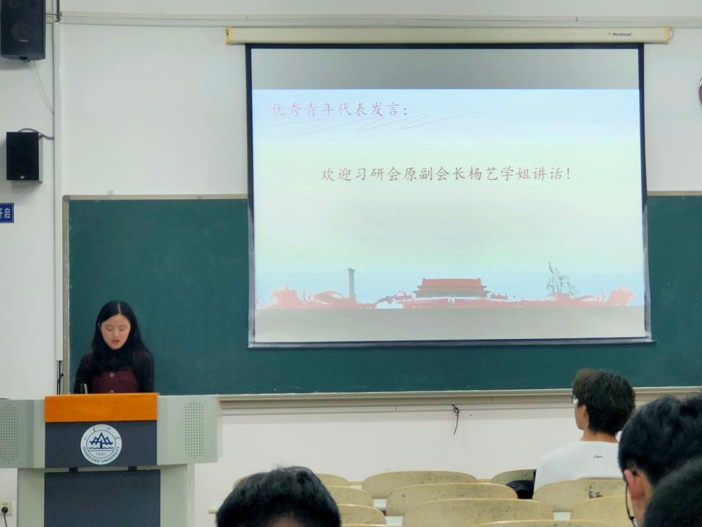 会议伊始,石雨葭介绍主题团日流程,并带领全体同学重温入团誓词,履行青春誓言。接着,石雨葭带领同学们重温习近平总书记“七一”重要讲话精神。中国共产党创造了新民主主义革命的伟大成就,创造了社会主义革命和建设的伟大成就,创造了改革开放和社会主义现代化建设的伟大成就,创造了新时代中国特色社会主义的伟大成就,石雨葭领诵青年“七一”献词,激励同学们用奋斗书写青春华章,将青春献给国家富强。通过播放电视剧《觉醒年代》精彩片段,同学们深刻感受建党百年几代人筚路蓝缕艰苦奋斗的艰辛,与当今幸福生活的来之不易。青年代表杨艺表示,作为新时代的青年,要能上天,有高度,做有思想的青年;能入地,有深度,做有作为的青年;更要在人间,有温度,做有情怀的青年。优秀党员代表李明威则从历史维度简述了共青团的历史,从组织建设角度点明了主题团日活动举办的意义,加深了同学们的团员意识,增强了团支部的组织凝聚力。最后,赵宇轩号召同学们做有理想、有抱负的时代青年;做有担当、有能力的时代青年;做有智慧、有创造的时代青年。