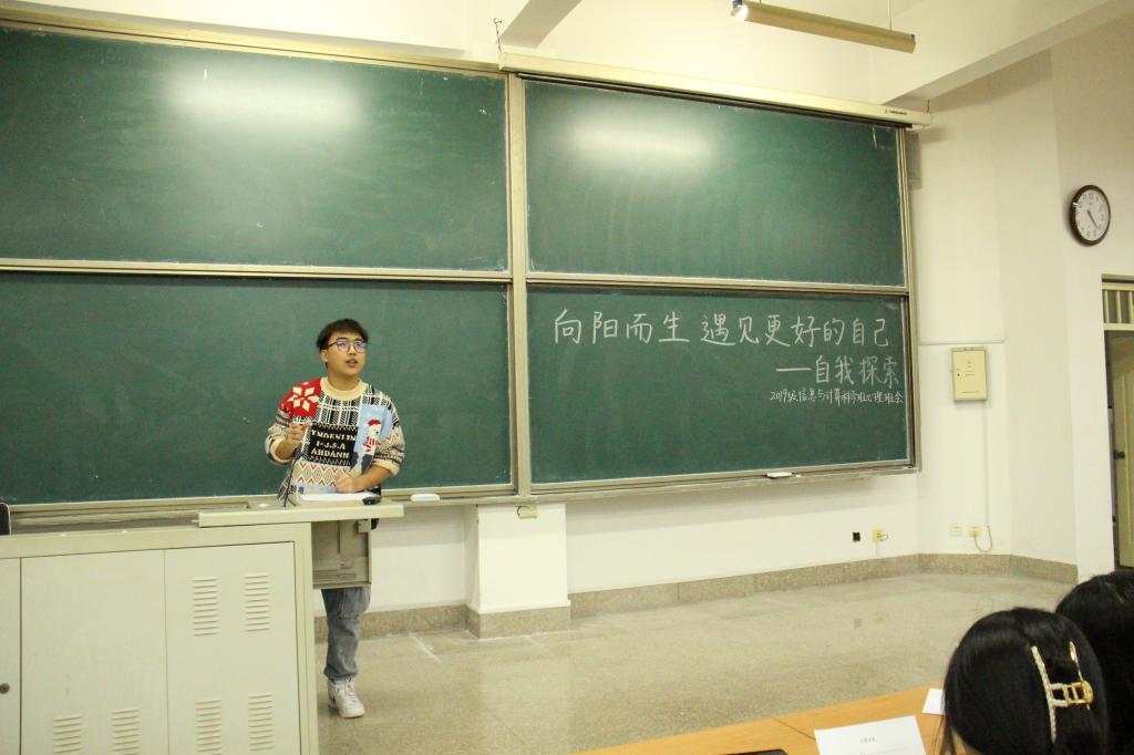 本站讯 2021年11月9日下午16:00-18:00,澳门十大网投平台排行2019级信息与计算科学班于商院447教室举办“向阳而生,遇见更好的自己”自我探索主题心理班会。本次班会由2019级信息与计算科学班心理委员郭慧玲、徐振东主持,班级同学积极参加。