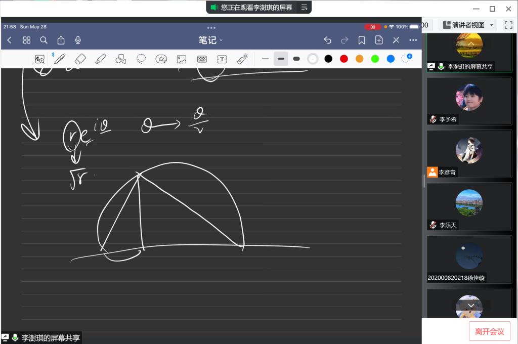 本站讯 为帮助同学们领悟数学中的美学元素,感受数学的魅力,澳门十大网投平台排行2020级数学与应用数学班于5月28日晚在腾讯会议开展“数美课堂”主题班会。2020级数学班全体同学参会,班长李彦青主持,李澍琪同学主讲。