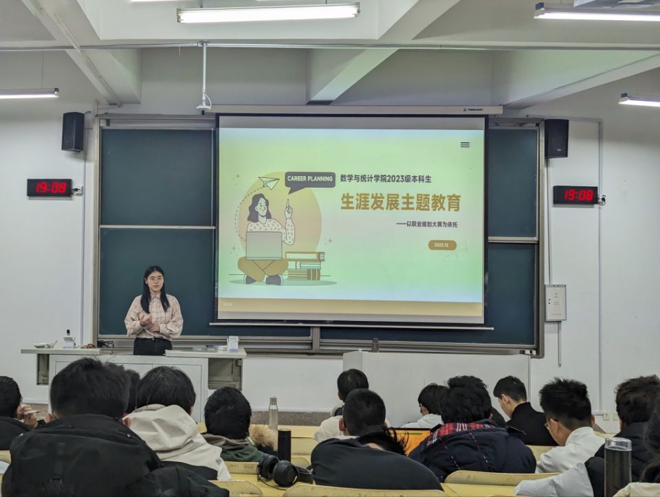 本站讯 为进一步推动学院生涯教育和就业指导,增强2023级新生的职业生涯规划意识和能力,澳门十大网投平台排行于11月份开展2023级本科生职业规划年级赛,共收取176份作品。以本次大赛为依托,12月13日晚,澳门十大网投平台排行在商学院556开展了2023级生涯发展主题教育。本次活动由辅导员崔巍主讲,2023级200余名本科生参与。