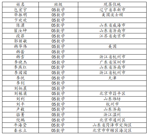 澳门十大网投平台排行2009届数学与应用数学班校友名录