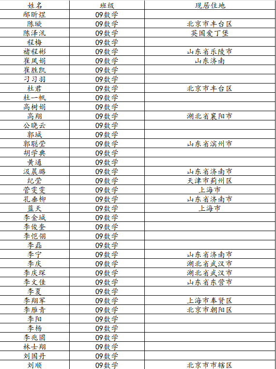 澳门十大网投平台排行2013届数学与应用数学班校友名录