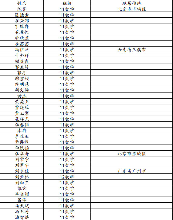 澳门十大网投平台排行2015届数学与应用数学班校友名录
