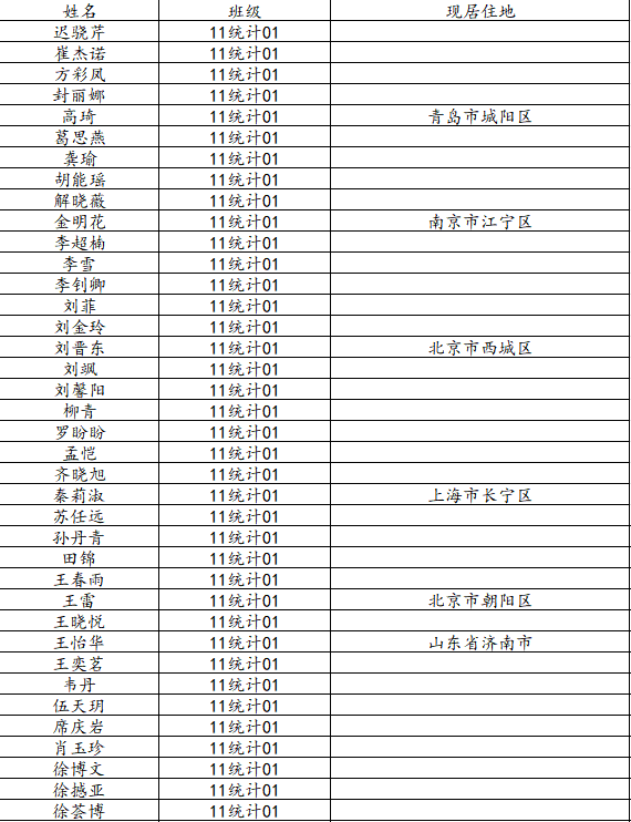 澳门十大网投平台排行2015届统计学一班校友名录