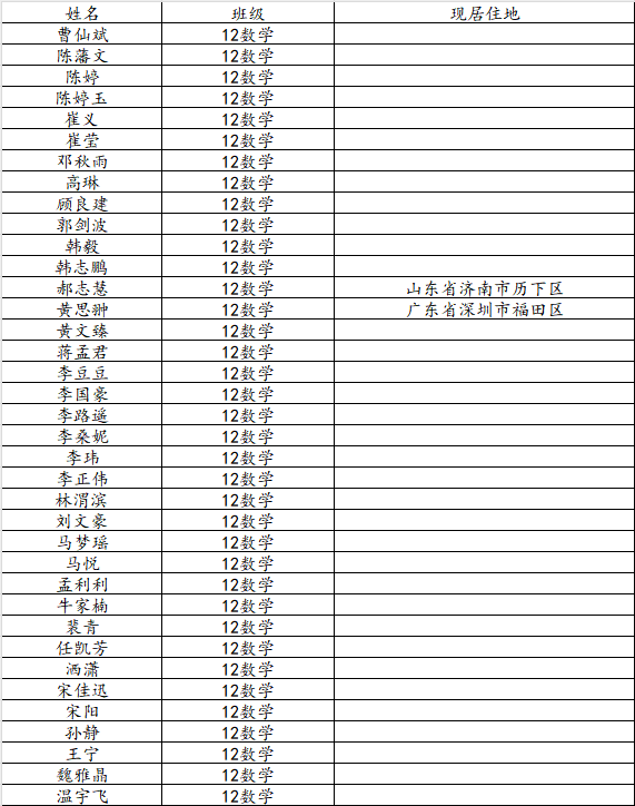 澳门十大网投平台排行2016届数学与应用数学班校友名录