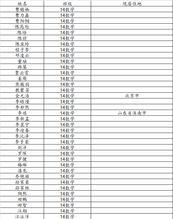 澳门十大网投平台排行2018届数学与应用数学班校友名录