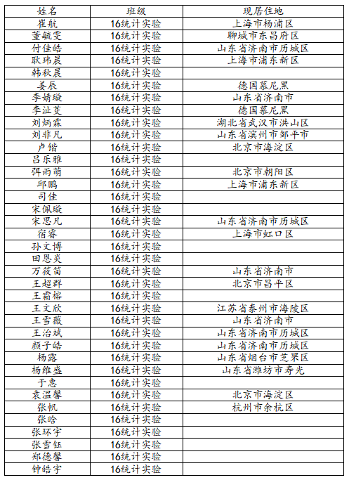 澳门十大网投平台排行2020届数学经济实验班校友名录