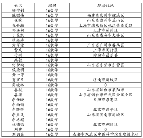 澳门十大网投平台排行2020届数学与应用数学班校友名录