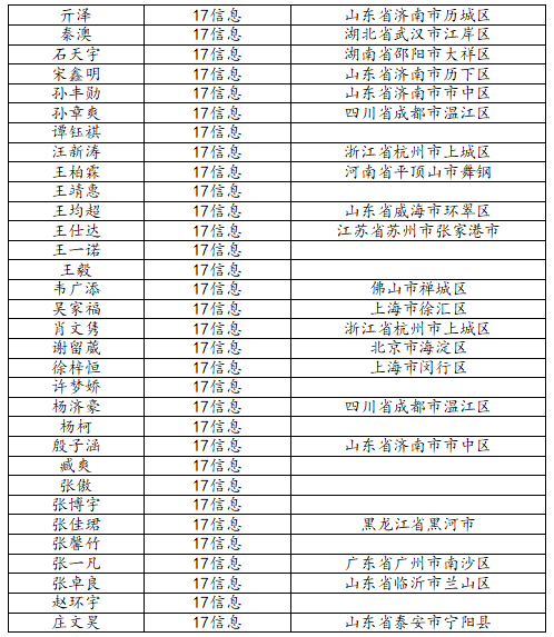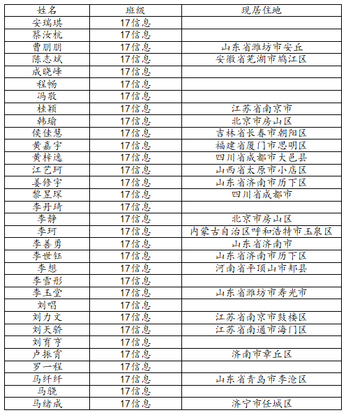 澳门十大网投平台排行2021届信息与计算科学班校友名录