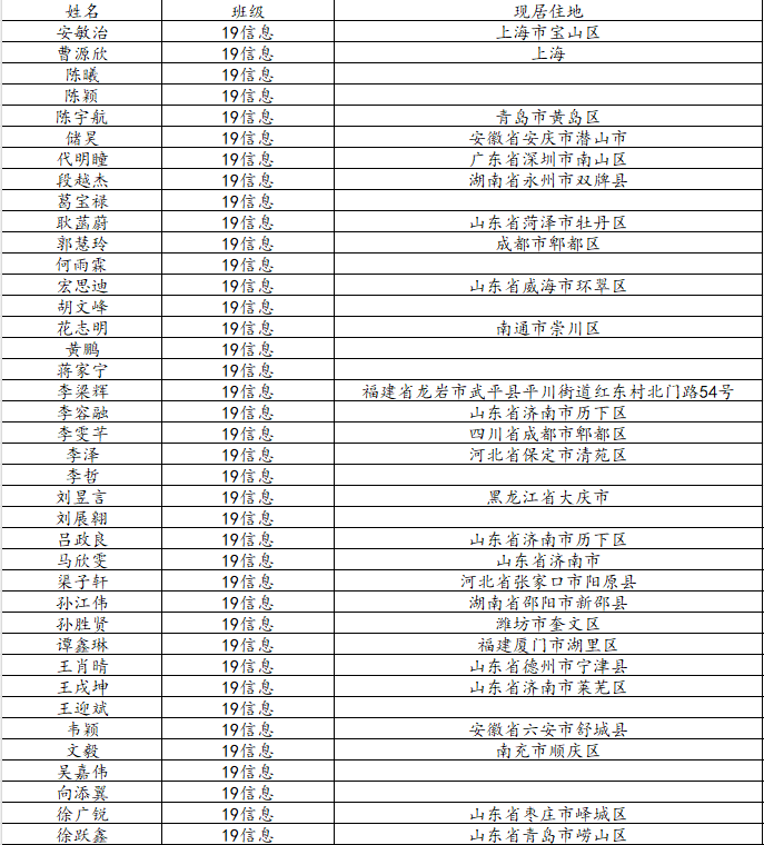 澳门十大网投平台排行2023届信息与计算科学班校友名录