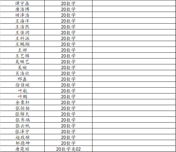 澳门十大网投平台排行2024届数学与应用数学班校友名录